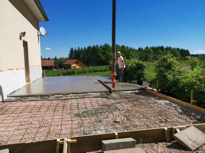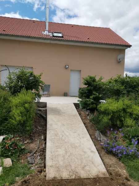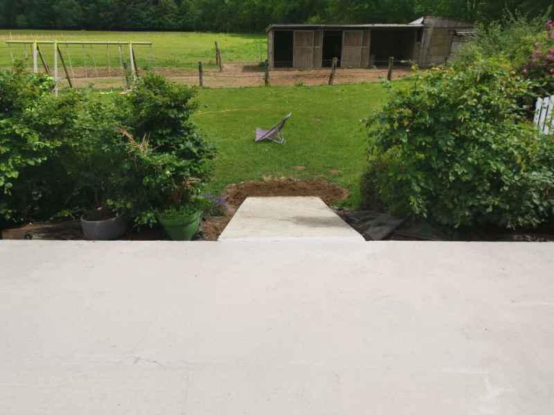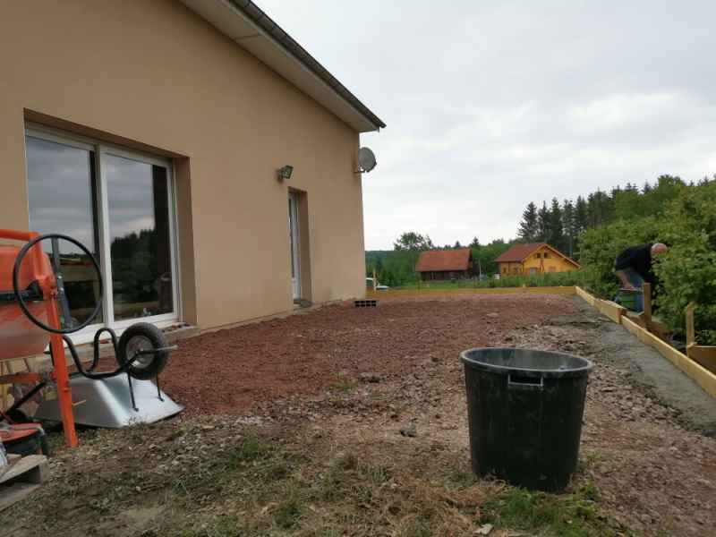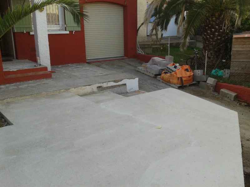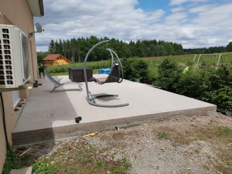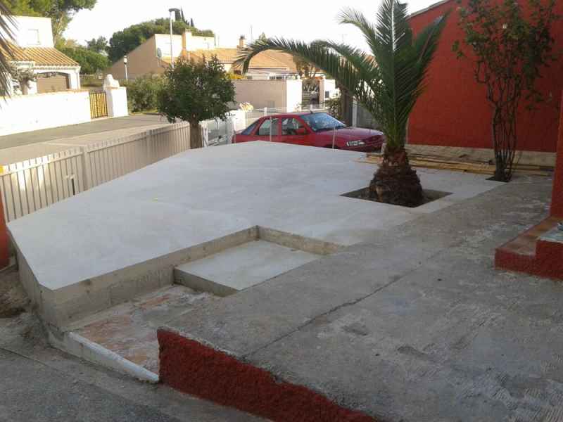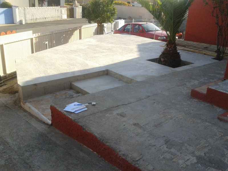 Création d'une terrasse en béton armé sur 2 niveaux avec escalier.